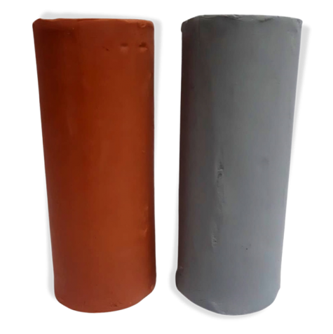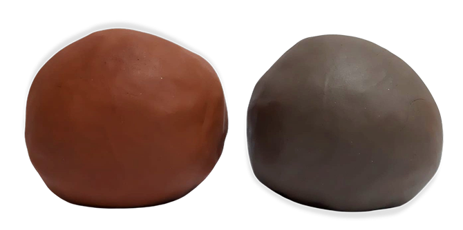 Argila cinza, branca após a queima. Sem chamote. Queima a 900°- 1300°